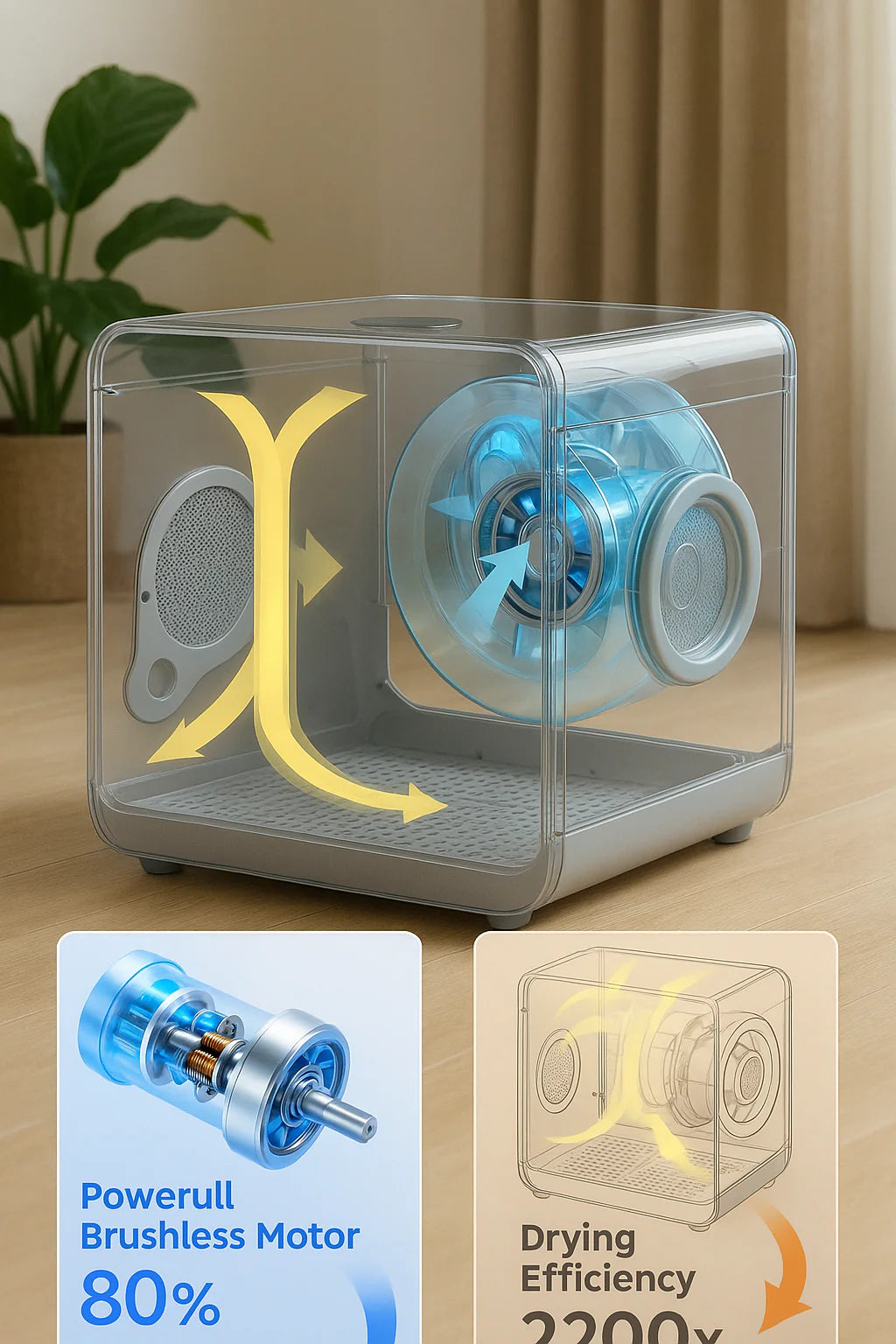 The advanced heating system ensures warm air is evenly distributed, providing an efficient drying experience while reducing the risk of chills.